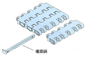 - 磁鐵型在鏈環(huán)中嵌有磁鐵,可進(jìn)行金屬託盤的傾斜輸送