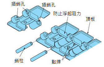- 通過在鏈條側(cè)面安裝新月型頂板,實(shí)現(xiàn)水平輸送的高容許張力型